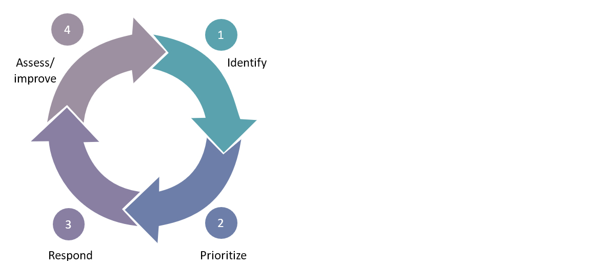 To be able to adequately manage their cyber risks organizations need to have teams trained in each component of cyber risk management and the methodologies that support this: (1) Risk identification (2) Risk prioritization (3) Respond and (4) Assess/improve.